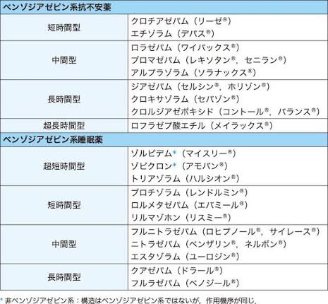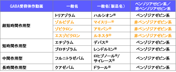 BZ系は抗不安薬と睡眠薬、非BZ系は睡眠薬