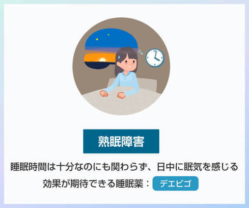 • 途中で目が覚める+朝早く目が覚める→ベルソムラ、デエビゴ