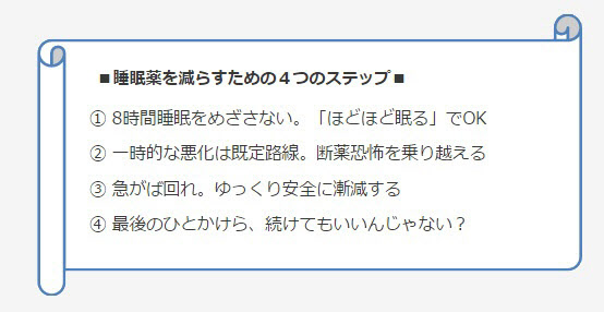 • 新世代の睡眠薬は「魔法の薬」ではありません。