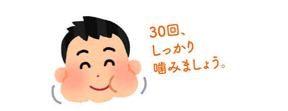 「よく噛む」(一口あたりおよそ30回くらい噛む)と、脳の満腹中枢が刺激され、少ない食事量でも満足感を得やすく、もう十分食べたという感覚が得られます。胃の動が遅くなり、食欲は抑制されます。