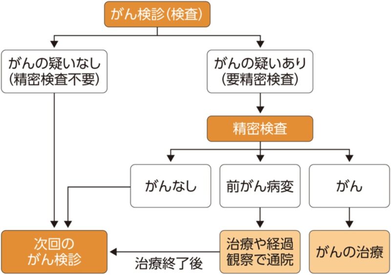 • 精密検査を受けて「異常なし、または良性の病変」であったときは次回の定期検診へ。