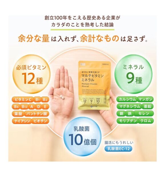 ダイエット中の方、偏食気味の方、健康志向の高い方、美容・美肌に関心がある方、独居老人で菓子パンなどの炭水化物しか食べていない場合などでは、不足分をマルチビタミンミネラルサプリで補うことをおすすめします。