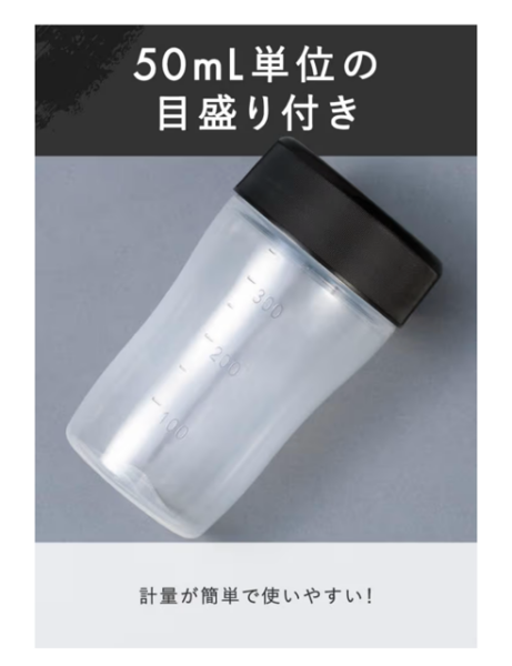 ・プロテインダイエット目的でコスパが良いものを選び、⑥「超シンプル」 ホエイプロテインを購入し、朝食時にシェイカーボトルを使用して先に水100mlを入れ、後からプロテインを付属スプーン山盛り2杯分 約30g(タンパク質21g)を入れます。先に粉類を入れると、後から水を入れるときに目盛りが見えなくなるからです。