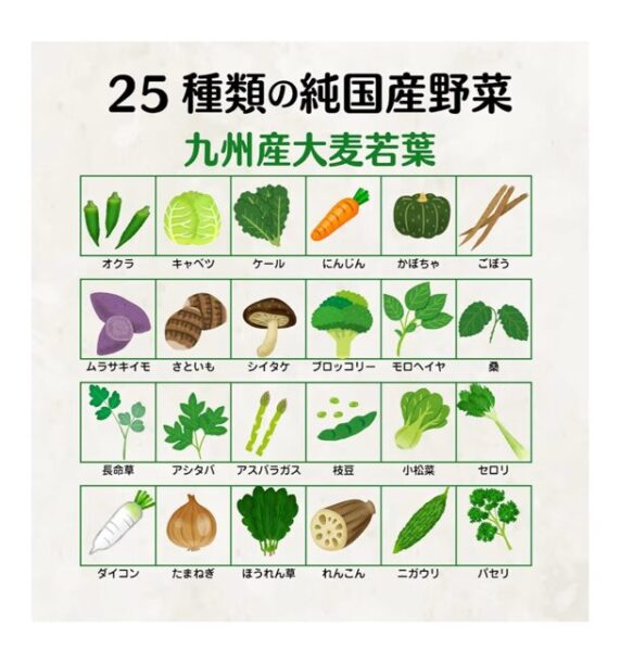 ・野菜を「1日推奨摂取量の350g以上」摂りたいので、青汁ダイエット目的で、⑦青汁(大麦若葉、25種類の「純国産」野菜)を購入し、朝食時に1包を、⑥のプロテインと一緒に混ぜてダマにならないよう「約10秒間シェイク」して、朝食の置き換えとして追加で飲みます。青汁は、国産の農薬・化学肥料不使用の野菜が安心です。