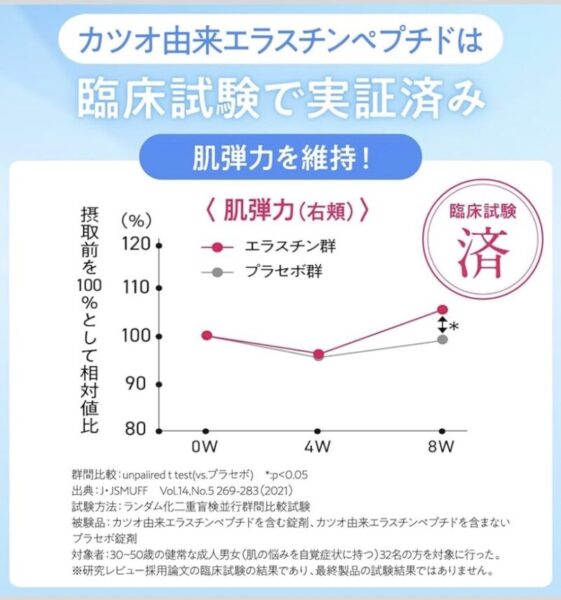 摂取されたエラスチンペプチドのうち、特にPro-Gly(プロリン-グリシン)などの特定のペプチドが血液中に吸収され、皮膚や血管などの組織でエラスチン産生を促進する強い科学的根拠があります。