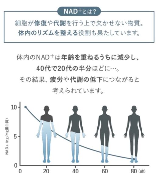 ③さて大トリは、世界中で学会発表がみられ最先端サプリと目されているNMN(ビタミンB3の1種)についてです。NMN(相乗効果が期待できるレスベラロール高配合)において、β型NMNに関するエビデンス(科学的根拠)が、主にマウス実験で抗老化効果(老化に伴う眼機能・骨密度・免疫細胞の維持・代謝改善・運動機能維持・認知機能回復など)が示されています。β型NMNを摂取することで体内でNAD+に変換されエネルギーや修復力の土台を支え、レスベラトールの摂取がNADによって活性化されるサーチュイン遺伝子(長寿遺伝子)の働きを助ける成分となり、この2つを組み合わせ一緒に摂取することで、内側からの健やかさや美肌サポートや身体のエイジングケアを支える相乗効果が期待されています。サーチュイン遺伝子の働きで、睡眠の質の向上、体内時計の乱れ抑制、ミトコンドリア活性化によるエネルギー産生効率増加、疲労回復、コラーゲン・エラスチンの生成促進作用による肌のハリ・弾力の向上、肌の色素沈着抑制によるシミ・そばかすの予防、認知機能改善など次世代のエイジングケアとして、若々しい身体機能の維持や改善が期待され「若返りの薬」としても注目されています。
