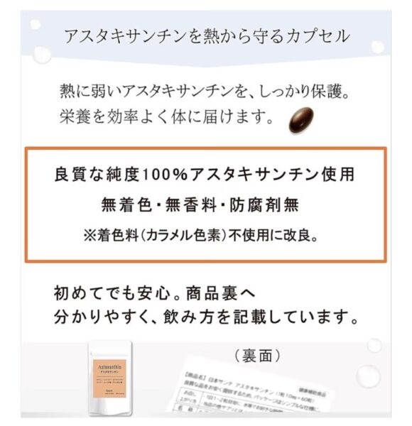 日本サンテのアスタキサンチンは国内GMP認定工場製造です。このアスタキサンチンには、ルテイン・ザクロ・リコピン・ノニも含有されており、肌質改善の他に、眼の健康にも良いので、美容に無頓着な私も視力が悪いので内服を開始しました。